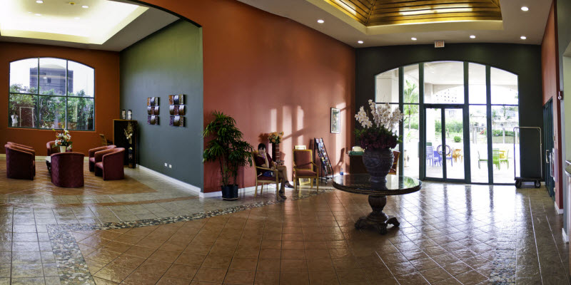 - Elevators and interior corridors in each Villa building